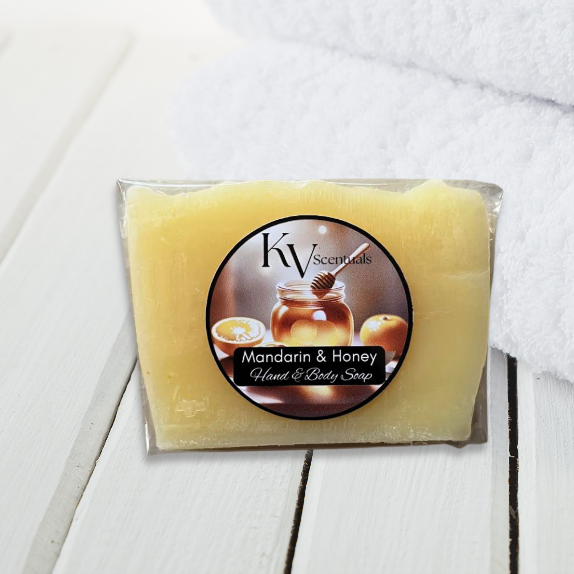 Indulge in our Honey & Mandarin Soap Bar, a perfect blend of natural sweetness and uplifting citrus. Let pure honey nourish and hydrate your skin while the invigorating aroma of mandarin energizes your senses. Made with nourishing ingredients, it cleanses and leaves your skin soft and supple.